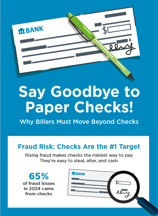Paper checks are fading fast, and for good reason! They’re the biggest fraud risk, costly to manage, and no longer supported by the U.S. government. Customers now expect faster, safer, digital-first ways to pay their bills.